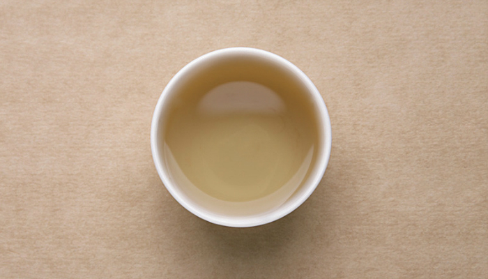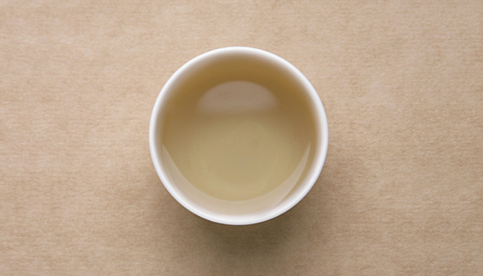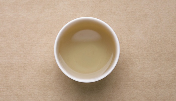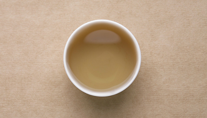 浅金色,茶汤带浅花甜香和蜜甜香,滋味淡,略带涩感。