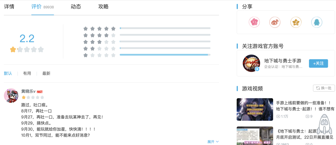 这就难怪,一方面,游戏官方公众号篇篇10万+,但另一方面TapTap、B站上各有超8万多玩家评出2点几分。