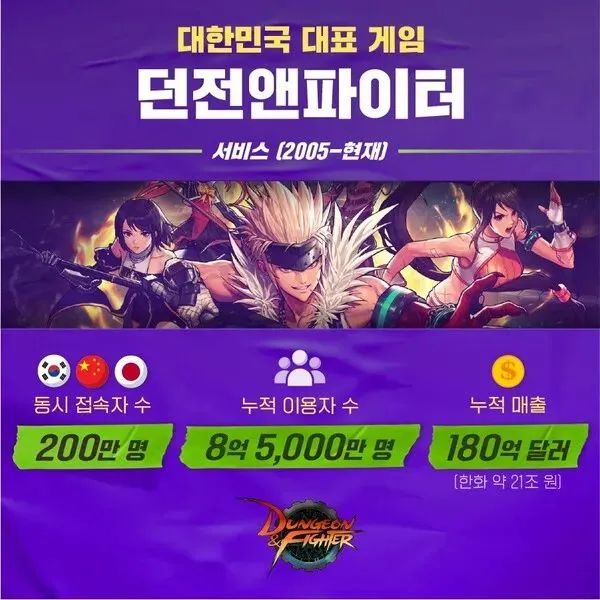 根据媒体报道,2005年来,DNF端游全球玩家8.5亿,累计销售额超过180亿美元。