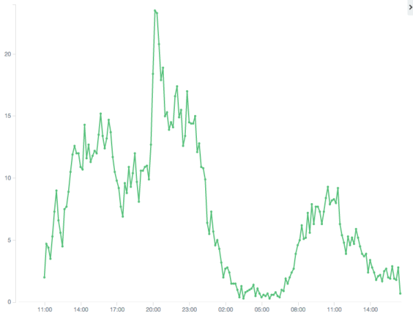 下图是时间轴上的弹幕数量,歌曲开始和结束明显是高潮区域。