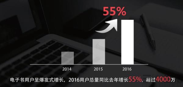 但是在电子书销售平台上情况就完全不一样了,当当网发布的2016年读书调查报告就显示,去年电子书用户同比增长了55%!更明显的是,以前电商平台上的电子书经常有一毛钱的书卖,现在已经基本很少看见了,这也是因为在电子书大受欢迎的情况下,出版商等势力也开始从电子书上寻求更多的利润。