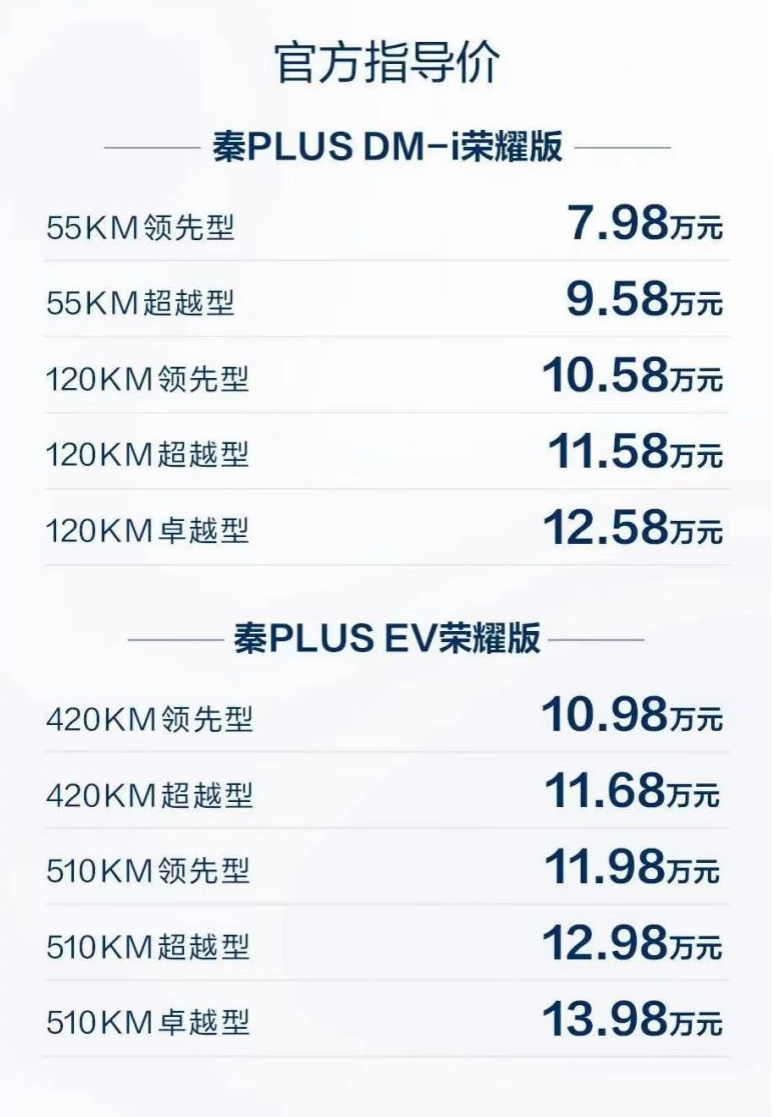 图/秦PLUS DM-i 荣耀版官方指导价 来源/比亚迪公众号