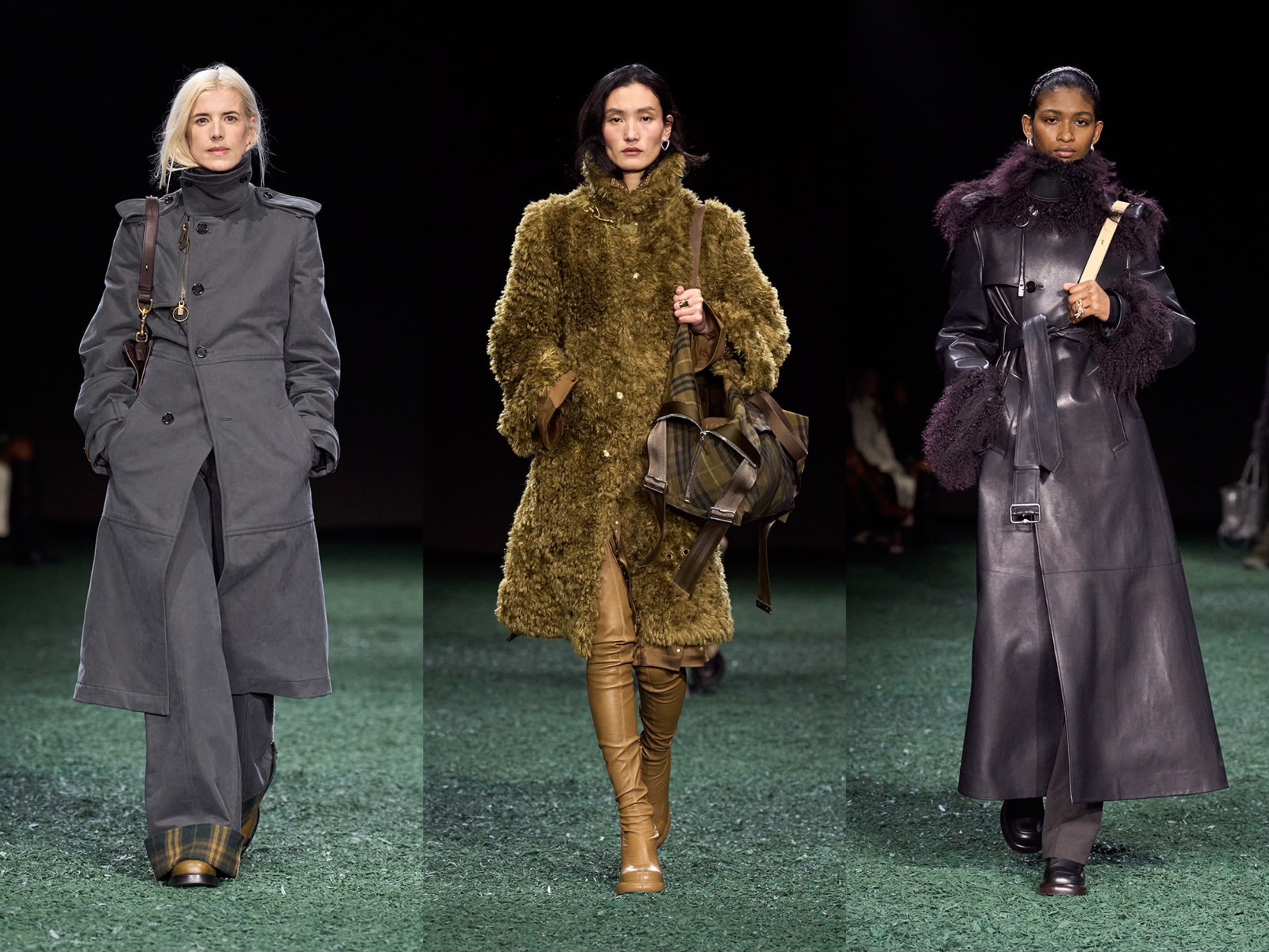 羊毛皮、编织流苏和蓬松羊毛,触感极致且兼具舒适。包款及鞋款采用功能性设计,并以Burberry的标志性图案装饰,延续隽永的品牌元素和战马骑士图腾。这场时装秀将户外美学带入室内,是对创意的礼赞。