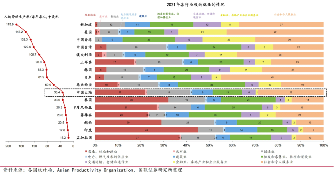 根据国联证券一份报道显示,从吸纳就业角度看,相比其他经济体,目前中国在批发零售、住宿餐饮上的贡献度较低,也就是说,餐饮住宿行业仍有红利空间。最近听说,有互联网大厂员工辞职回乡成为了茶饮区域加盟商,开出多家门店,回报颇丰,当然,坊间的致富经还需要经过更长时间的验证。