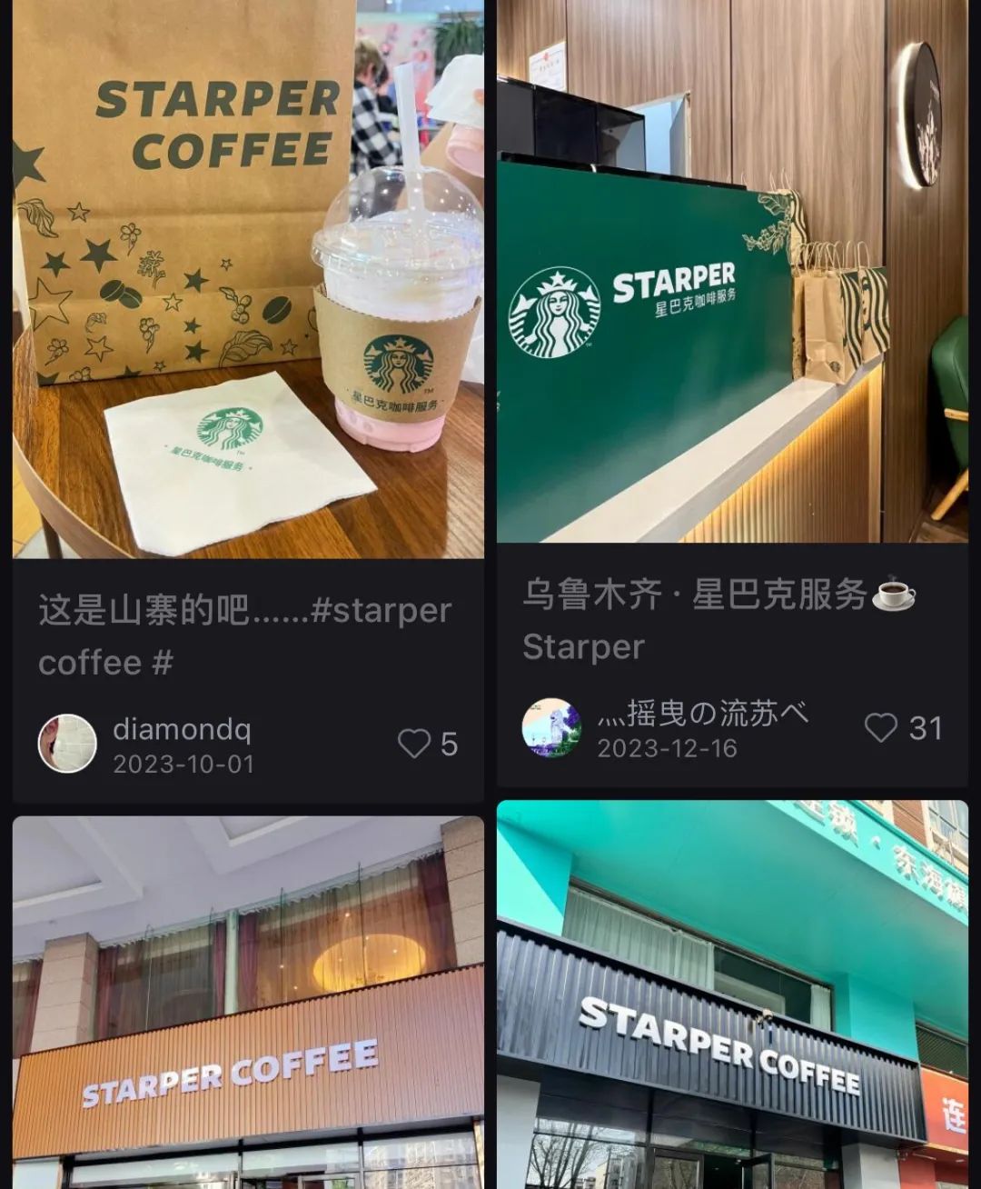 作为资深咖啡用户,2024年2月,我走进去一看,整体风格接近星巴克,绿色调点缀,但塑料感扑面而来,只有logo几乎一样,但细看,店名却叫StarKay,店内物料又处处写着星巴克咖啡服务,透着些许不协调和山寨感,令人生疑。