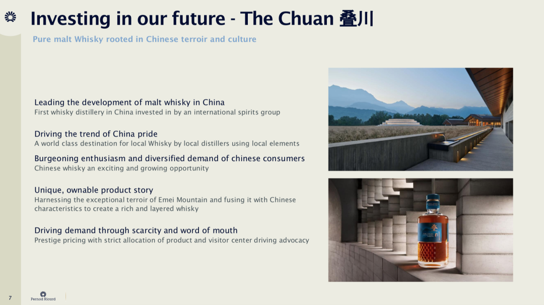 在业绩会上,保乐力加中国业务的最大亮点之一,则是被重点介绍的该公司近年来最大的投资之一——位于四川省峨眉山的叠川麦芽威士忌酒厂(The Chuan)。