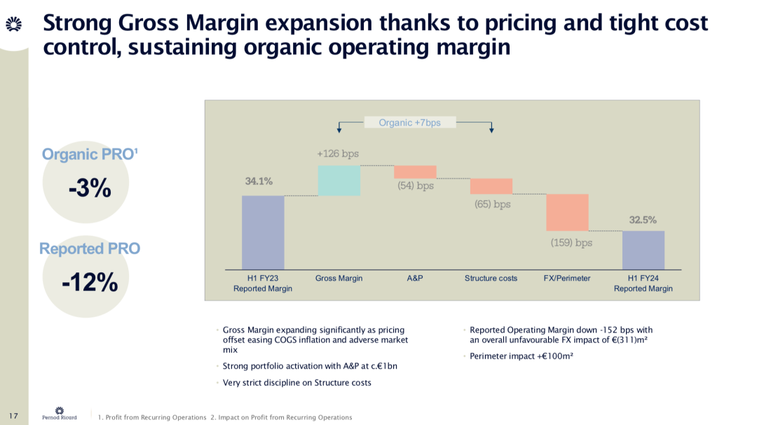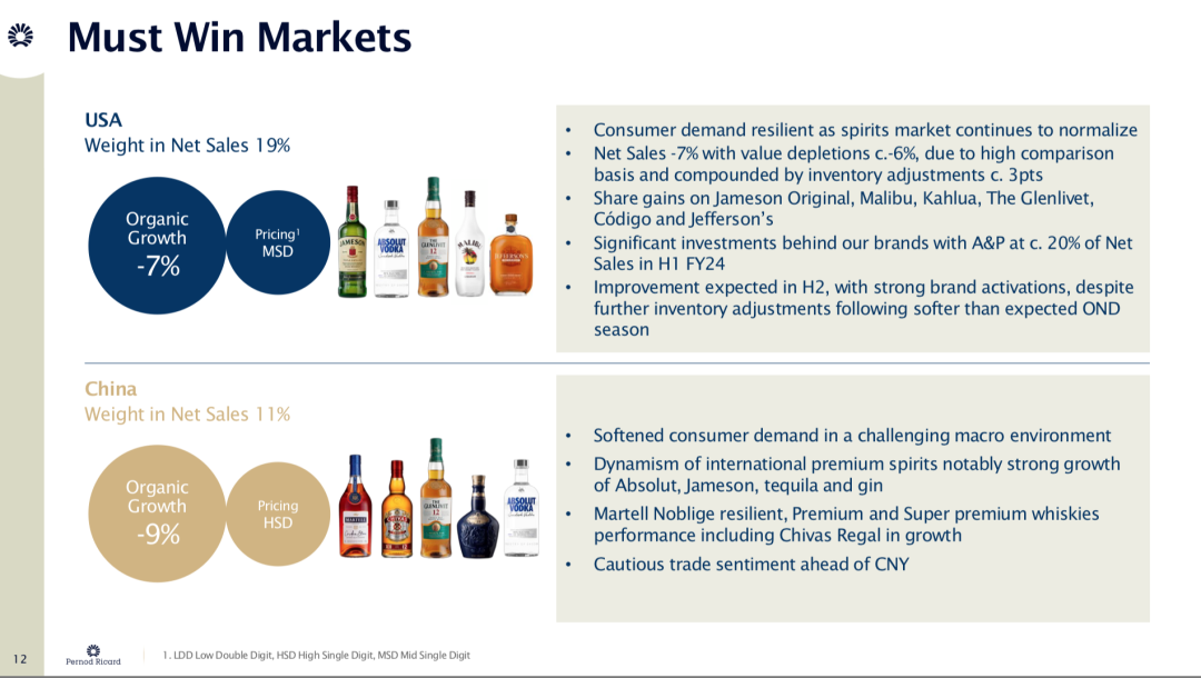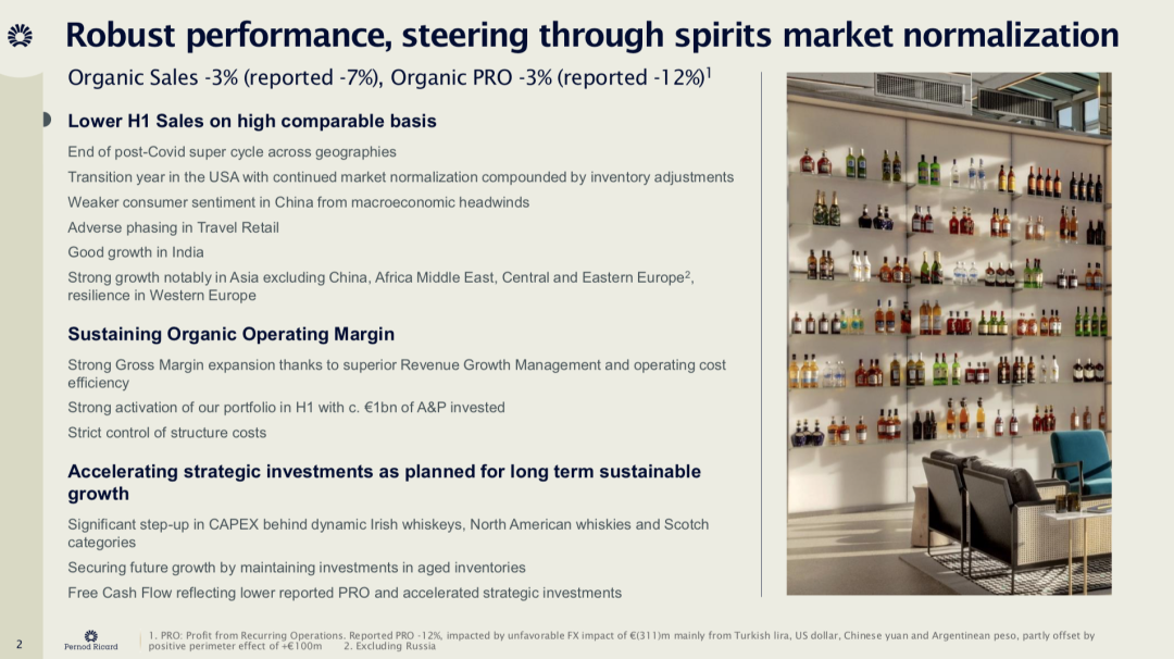 “高端产品组合在所有地区推动了高个位数涨价,但伴随着销量下滑且市场结构不利。(我们仍)在许多市场中维持或获得份额。”保乐力加表示。