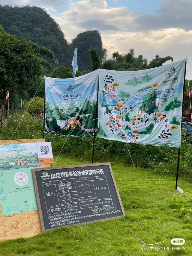 2023年6月,北面在阳朔举办了夏日山地节,设置了包括露营、水上抱石,攀岩,探洞、飞拉达等活动,邀请KOL、媒体和当地地群众参与,并在小红书上分享体验,获得大量曝光。