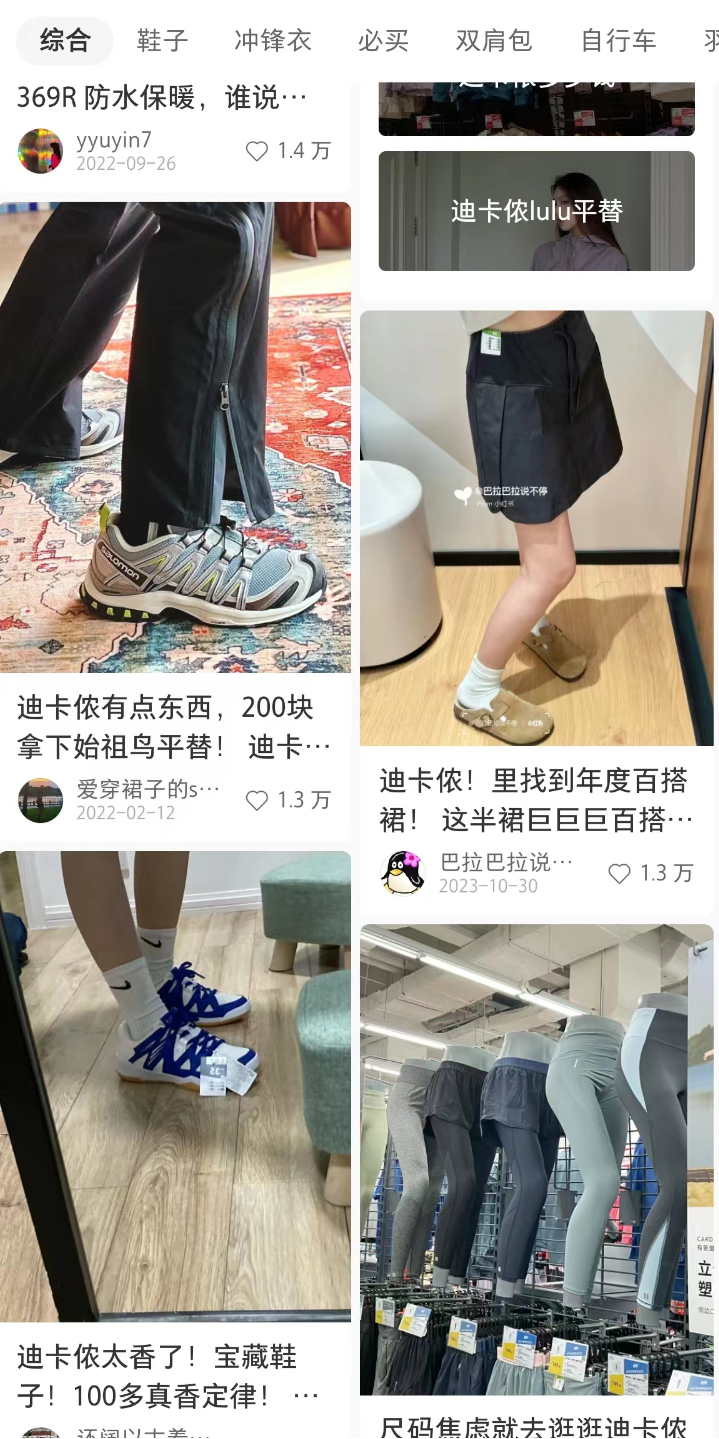 小红书上以迪卡侬为关键词有15w+篇笔记