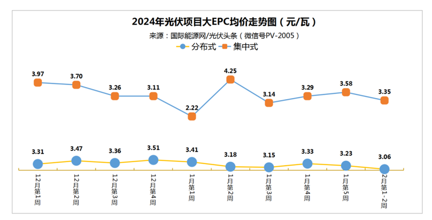 到今年2月春节前,分布式与集中式项目中标均价再度双双下行。
