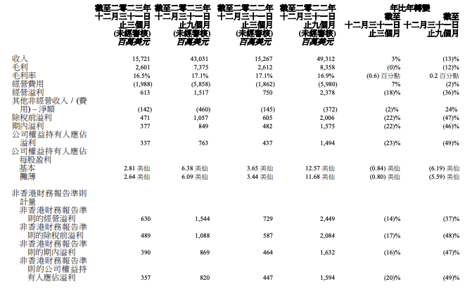 联想集团2月22日午间在港交所公告,2023/24年财政年度第三季度,集团收入连续三个季度录得增长,按季上升9%至157亿美元,亦标志着集团最近一年半以来首次实现季度收入同比增长。权益持有人应占溢利连续增长35%,但由于去年同期的比较基数较高,因此录得同比下跌23%。