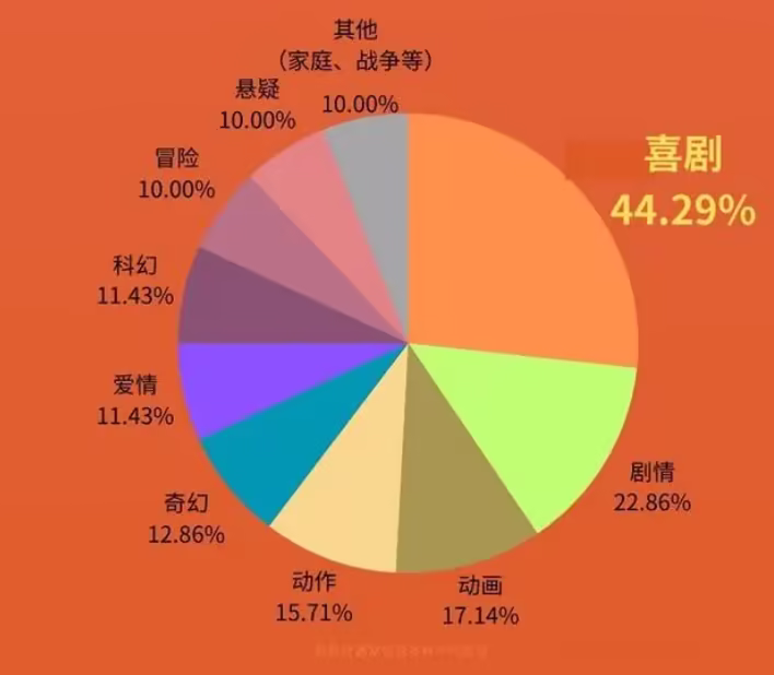 正如上文分析的,中国电影春节档的市场规模足够大,喜剧类型的影片最受欢迎。
