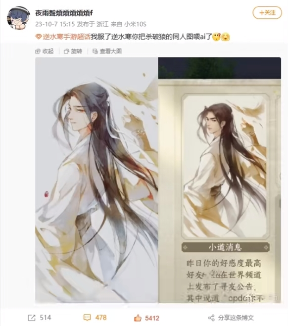 而同人图创作的社区来自于网易旗下另一款轻博客产品LOFTER。此前在去年三月份,该产品就曾经因上线AI绘图功能“老福鸽画画机”,引发平台创作者不满。导致官方发文致歉,并承诺:上线平台作品反AI爬取功能,尊重和保护创作者不希望被“AI学习、训练”的意愿。