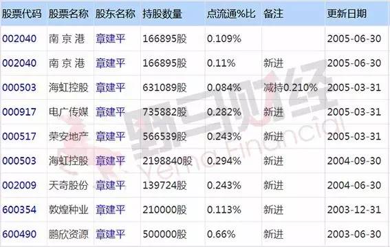 在这两年中,章建平现身7家公司的十大流通股东的名单中,分别是南京港(002040.SZ)、电广传媒(000917.SZ)、海虹控股(000503.SZ)荣安地产(000517.SZ)、天奇股份(002009.SZ)、敦煌种业(600354.SH)和鹏欣资源(600490.SH)。在操作手法上,他选择短线操作,这个季度买入,下个季度就卖出,决不多做停留。