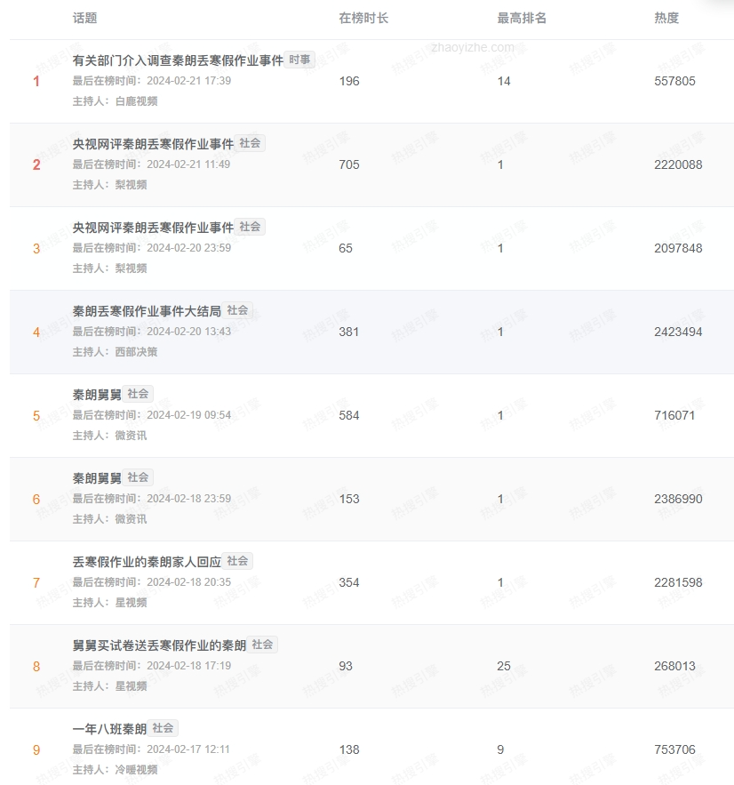 随着剧情推进而来的,则是一条又一条的热搜。从最开始的“一年八班秦朗”到“有关部门介入调查秦朗丢寒假作业事件”,从“舅舅买试卷送丢寒假作业秦朗”到“秦朗舅舅账号被禁”,谣言和辟谣双重信息聚于热搜。