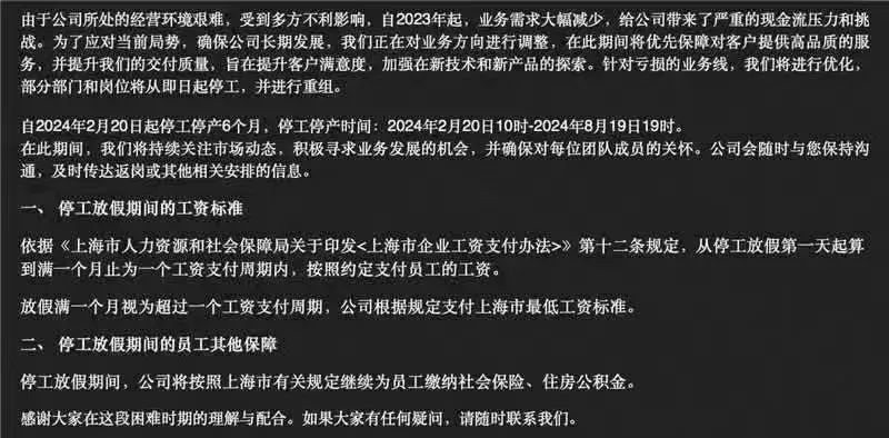 针对亏损的业务线,竹间智能计划进行优化,部分部门和岗位将从即日起(2月20日)停工,并进行重组,停工停产时间定为了6个月。