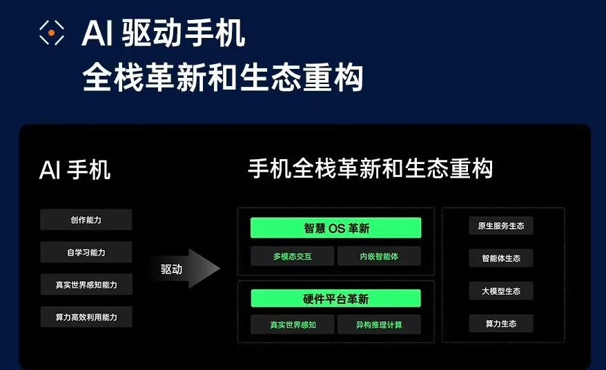 从这几个特征来看,AI手机在硬件、操作系统、用户交互体验等多个方面,实际上都需要被重构。