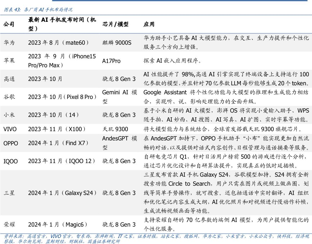 算法及计算能力的增强使得AI手机能够提供更即时的响应,拥有更高的能效比;
