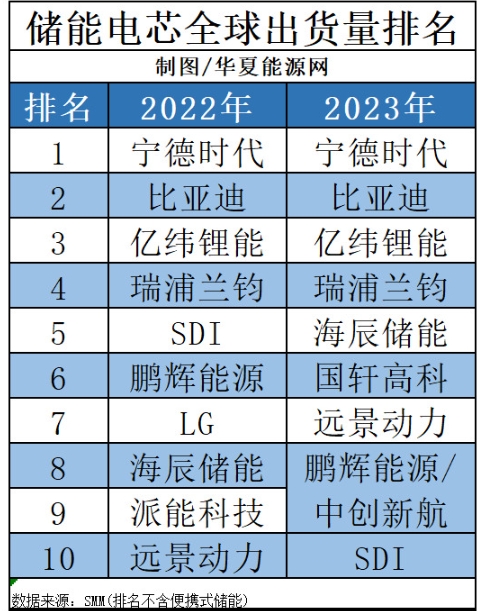 与2022年相比,新榜单显示出较大变化,储能电芯市场格局已然“变阵”。