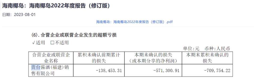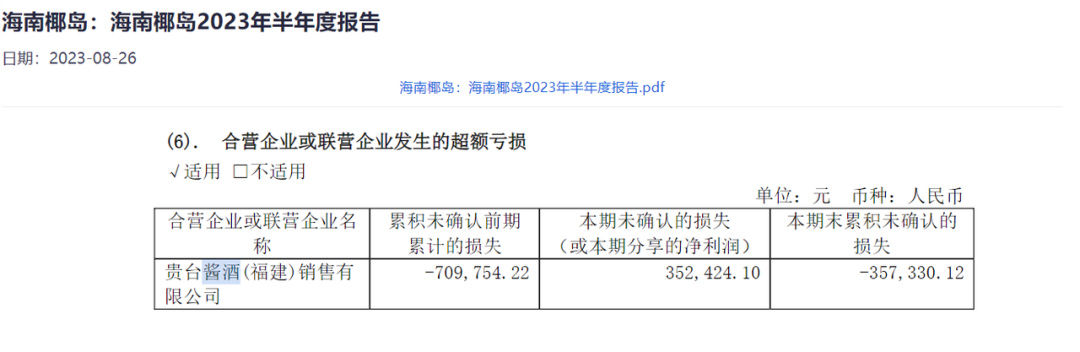 不过,从销售情况来看,海南椰岛联营企业贵台酱酒(福建)销售有限公司的销售情况不佳。
