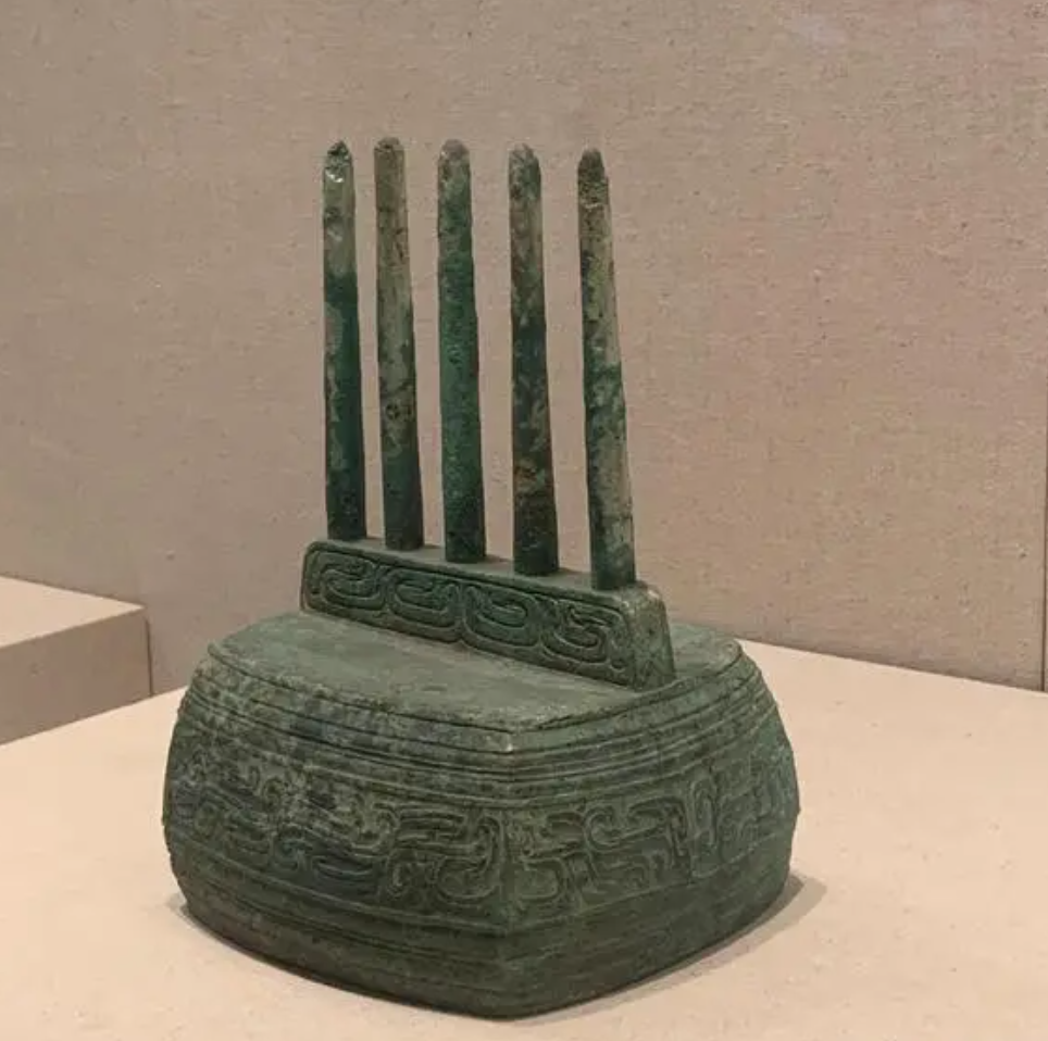 1959年,黄山屯溪弈棋机场1号墓出土了一件距今约三千年的奇特青铜器——云纹五柱器,被网友戏称为西周路由器。