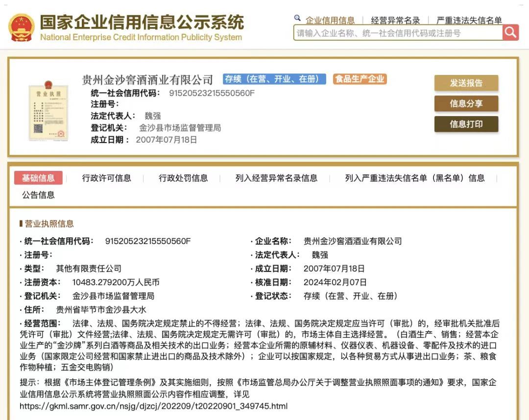 2月22日,酒讯从国家企业信用信息公示系统官网获悉,魏强出任金沙酒业董事长,范世凯、赵伟新出任金沙酒业董事,侯孝海、曾申平退出公司董事会。