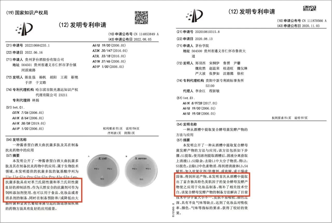 另外,茅台在化妆品领域取得了多项专利技术,多次和化妆品头部企业在学术、科研上开展合作。