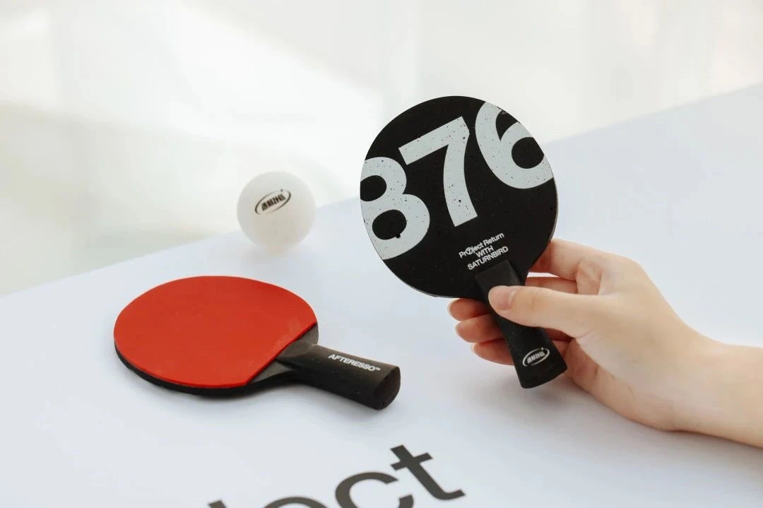 三顿半还用回收来的咖啡渣做了一组mini乒乓球拍,意在让大家轻松玩起来,循环再生值得纪念,回归生活也同样重要。