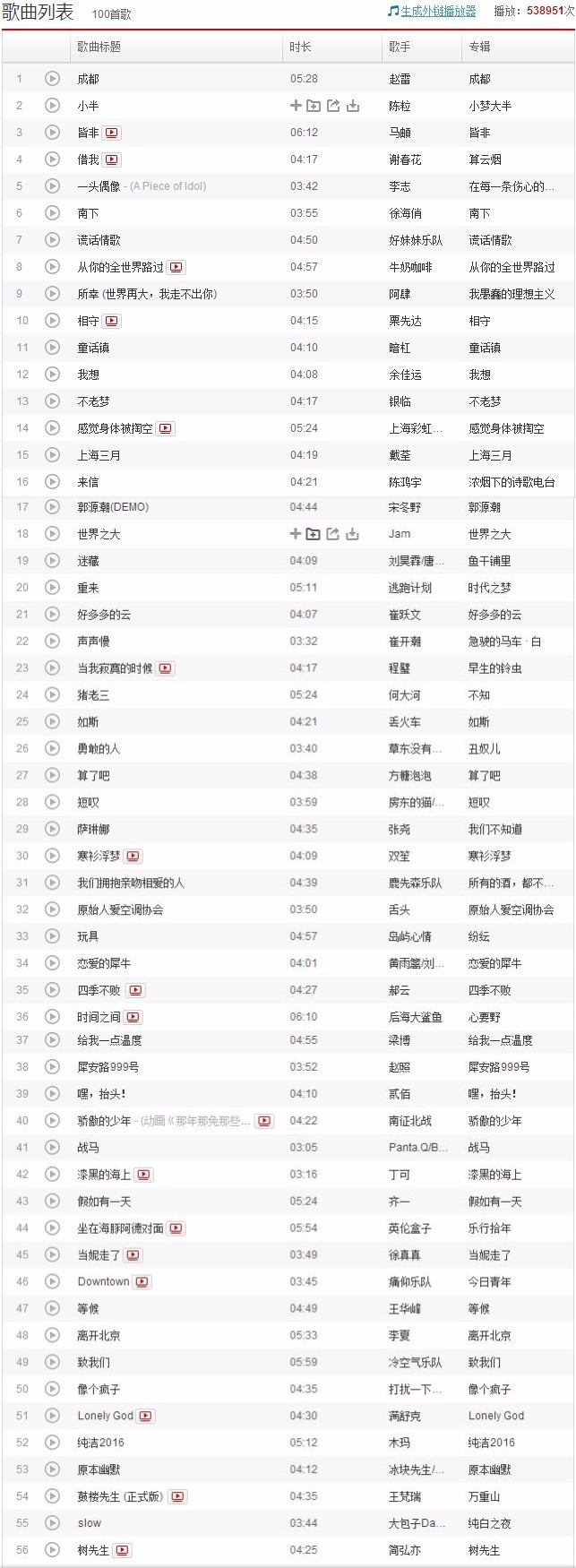 作为民谣等较为小众音乐类型的重要阵地,榜单虽不能权威涵盖所有独立音乐作品(只收录了入驻网易音乐人的歌手作品,所以如朴树等歌手在2016年虽有好作品却未能入榜)