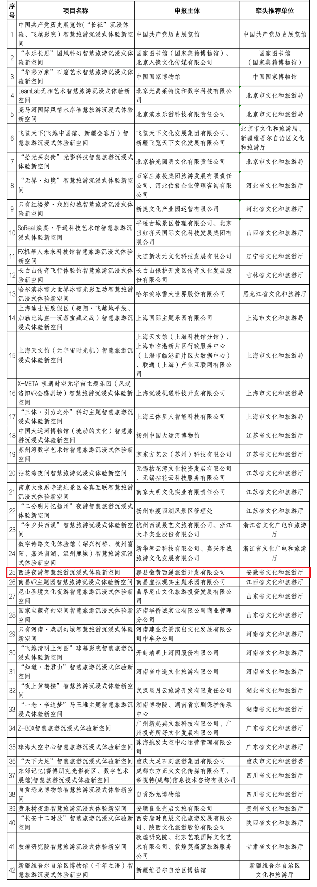 三部委第一批全国智慧旅游沉浸式体验新空间培育试点项目名单