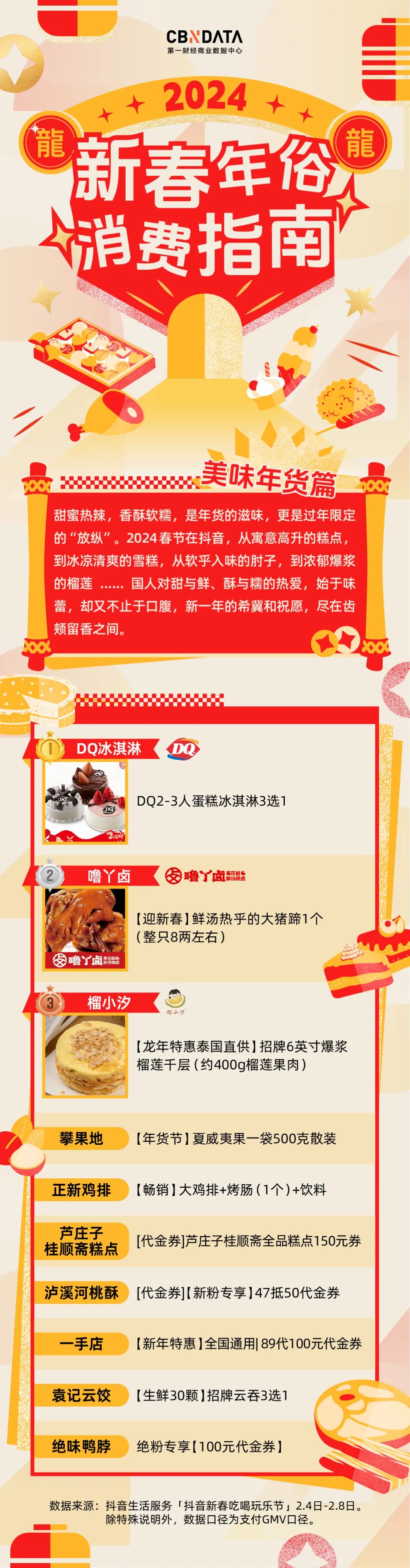 榜单中从正新鸡排到DQ冰淇淋,年货的选择多寡随意,丰俭由人。更重要的是,如今舌尖上的年货不止于对他人的祝愿和希冀,亦是一种自我满足。人们从美食中互赠情谊、汲取快乐,共享同一口甜与咸、糯与酥,这是独属于中国的“年味”。