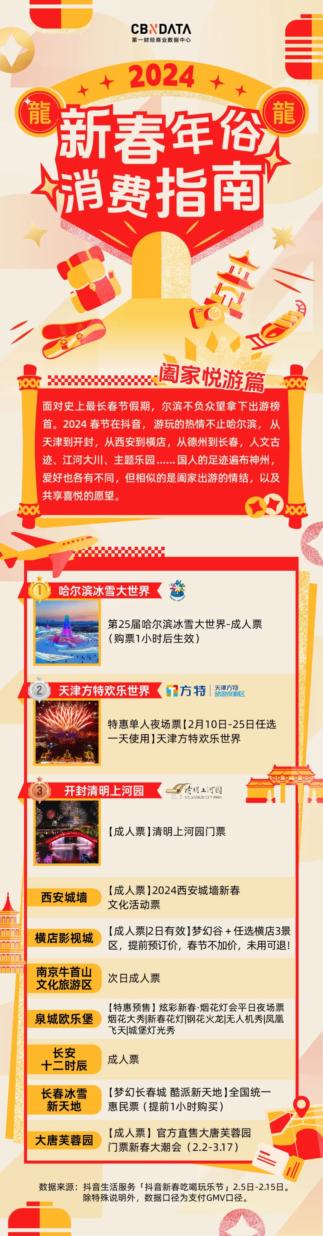 首先是冰雪经济热度持续,冰雪游成为这个冬天名副其实的顶流。哈尔滨不负众望荣登榜首,长春冰雪新天地也榜上有名。春节期间,凭借独特的冰雪文化和丰富的冰雪活动,长春、白山、沈阳、延边等地吸引了大批南方朋友前来玩雪。这一现象背后,反映了消费者对于体验型旅游的渴望,以及对于冬季特色活动的极高热情。