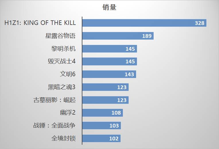 前不久,外媒曾通过SteamSpy统计了一份2016年发售销量破100万的新作,得出《H1Z1:King of the Kill》是销量最好的作品,虽然《H1Z1》真正的时间应该是2015年,但由于很多游戏都是提早预售的,因此该表还是据有一定的参考价值。