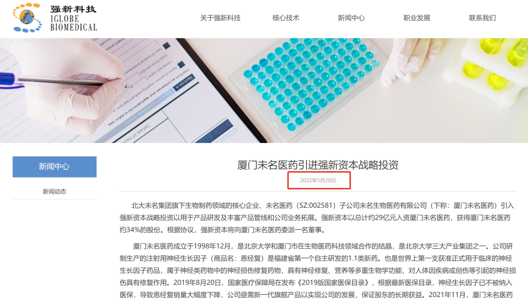嘴上是这么说,但情怀也不能当饭吃。增资事件的涉案人李鹏飞曾在《浅谈强新资本为啥29亿增资厦门未名》的文章中称,强新的新冠药物已处于三期,亟需基地,而厦门未名占地150余亩,且目前大部闲置。强新认为是一块非常好的标的。