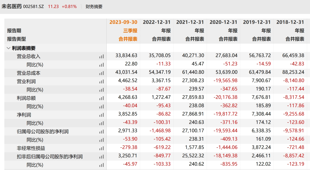 除了被实控人占用资金外,未名医药还一度无法收到北京科兴的分红款,因后者主要股东矛盾不断,审计机构一直无法充分接触其财务资料。未名医药业绩自2018年起也如同过山车一般,不断重复亏损-盈利的循环。至最近两年,还出现连亏。