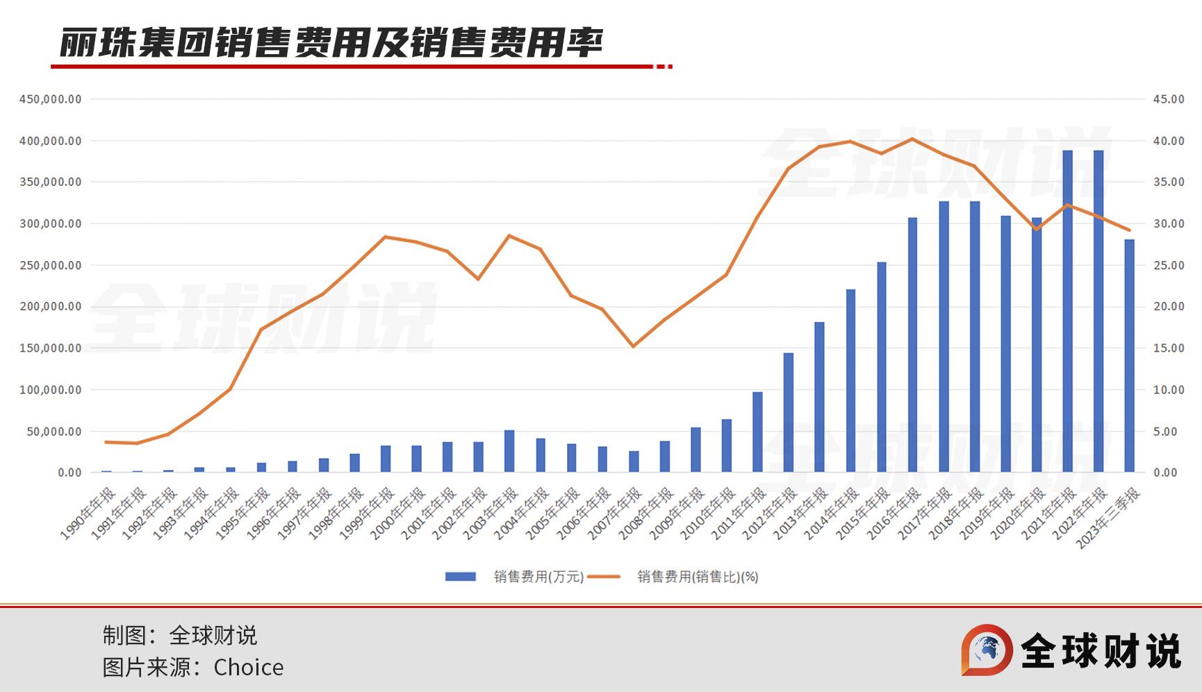 自2007年起,丽珠集团销售费用节节攀升,2021年、2022年分别达到38.84亿元、38.88亿元。2011年至今销售费用率徘徊在30%附近,最高曾达到40.13%,销售费用中,约九成为市场宣传及推广费。