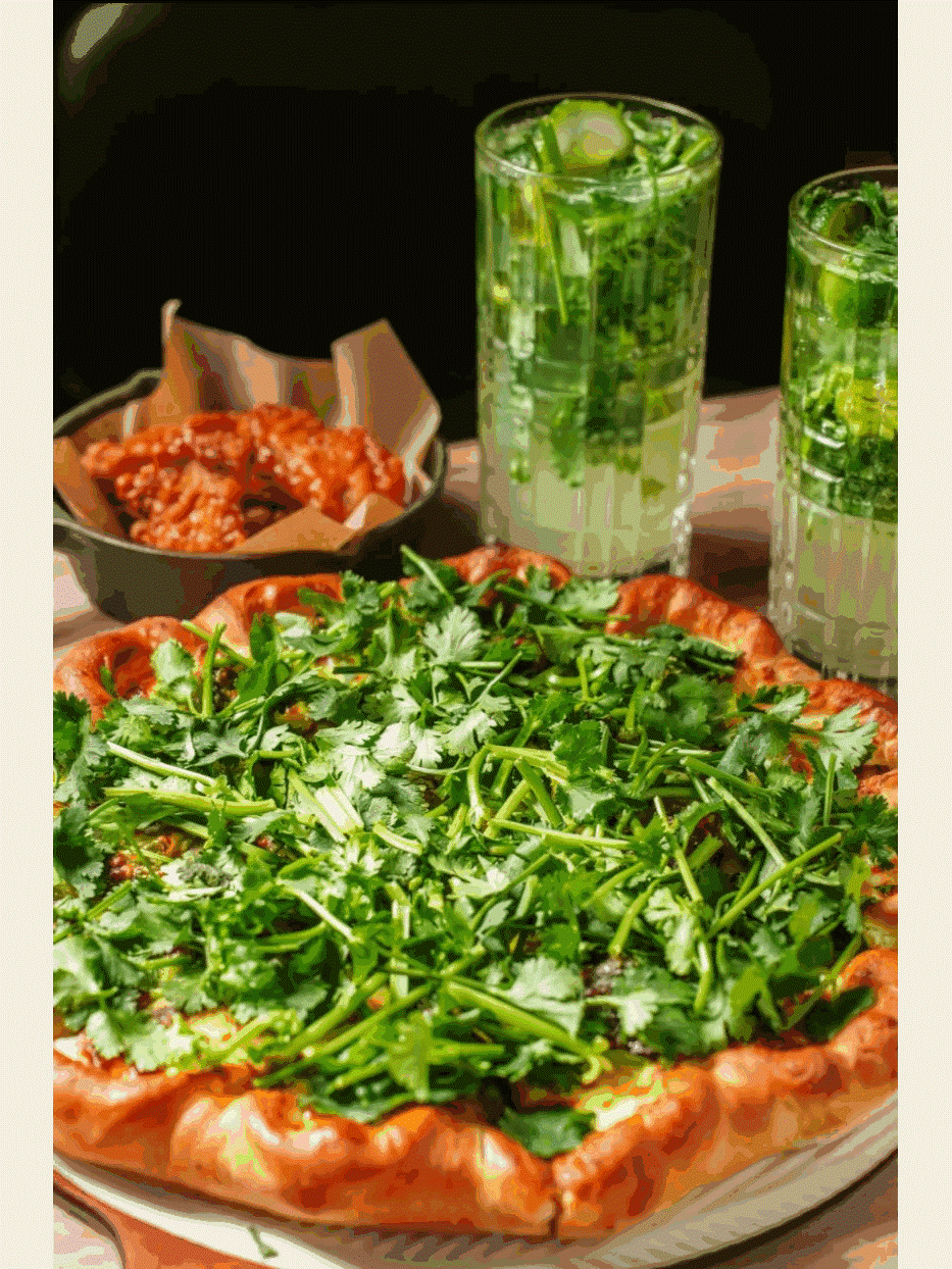 “超多香菜”,不仅通过夸张的方式制造了视觉冲击,同时,让通常作为调味菜的香菜喧宾夺主地成为主角,这种反差感更加增强了香菜的喜剧效果。