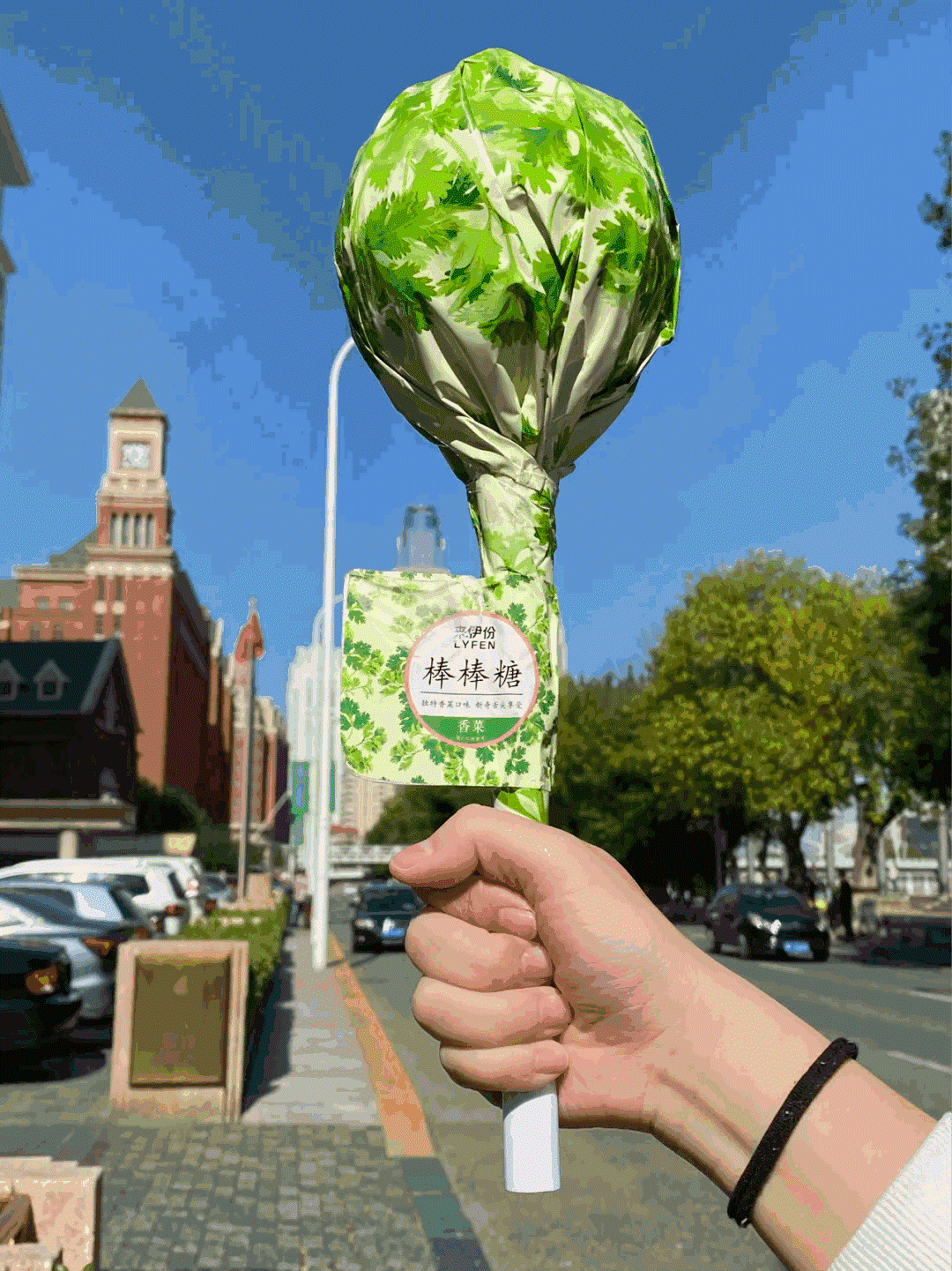 当香菜口味遇上棒棒糖,味道会是“香甜香甜”的吗?2023年,来伊份就曾推出一款香菜味的超大棒棒糖,让香菜爱好者们一次吃个够。