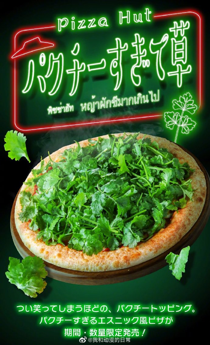 必胜客在日本推出的香菜披萨,宣传海报更是很直白地标出了“香菜太多了!”的文案。