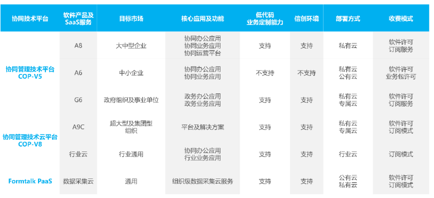 目前,致远互联已经拥有COP-V5、COP-V8两大技术平台,原有A8、G6产品也融入其中。此外,还在原有产品基础上加入了其他功能。