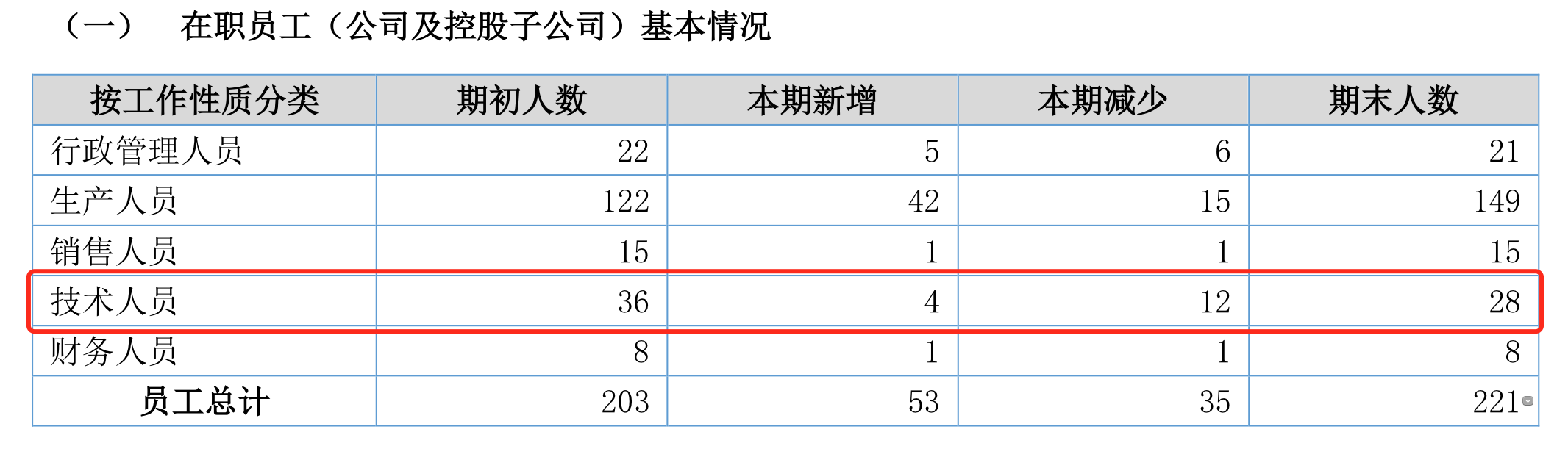 除此外,在上一次上市委审议时,还提及了两个点,一个有关研发人员,一个关于募投。在此,由于天松医疗最新版的募资诉求并未披露,并不好进行比较,但通过公司的定期报告,则可以看到研发人员最新的情况。
