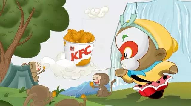 这是肯德基2017年“找到开始的力量,闻鸡起舞”的春节营销项目。至于鸡年与美猴王的关系——肯德基称这是一个“四宝闹新春”的推广,包括葫芦娃、英雄哪吒、黑猫警长和孙悟空在内的4个今年国漫形象,都会出现在产品包装上。