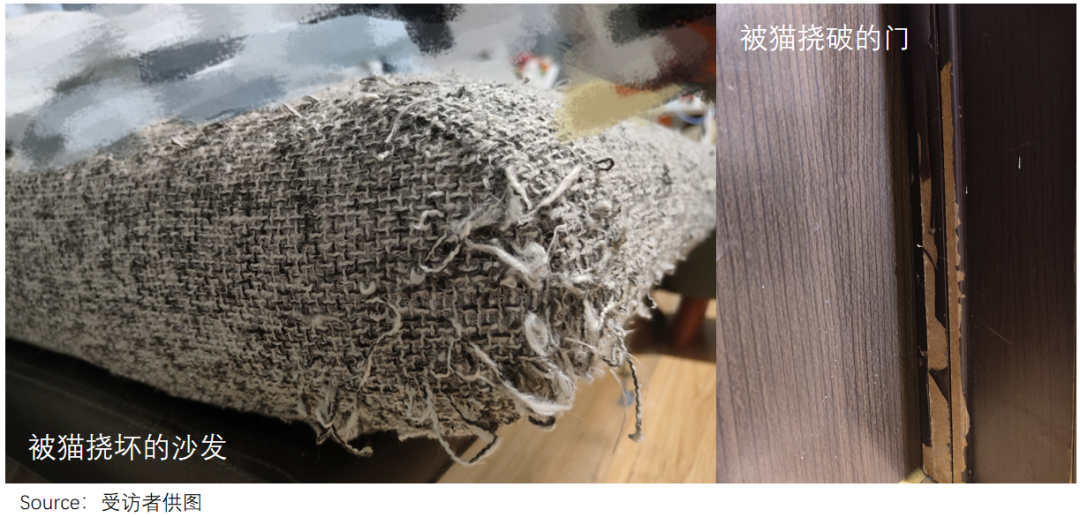 除了铲屎官主动奉献,猫也会“自抬身价”。养猫之后,梓伊家的沙发变成了勾丝款,窗帘被挠成了破布,杯子也数不清碎了多少个。收拾烂摊子,成了她的家常便饭。