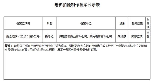 目前广电备案公示的网站上已经能够查到该片的相关信息,该片备案的剧情梗概是:“影片以三毛在西班牙留学及西非生活为底本,讲述她作为文坛时代偶像的成长经历,包括她在旅途中的见闻和对爱情的感人执着,用她独特的人生历程,展示一部现代浪漫爱情电影故事。”