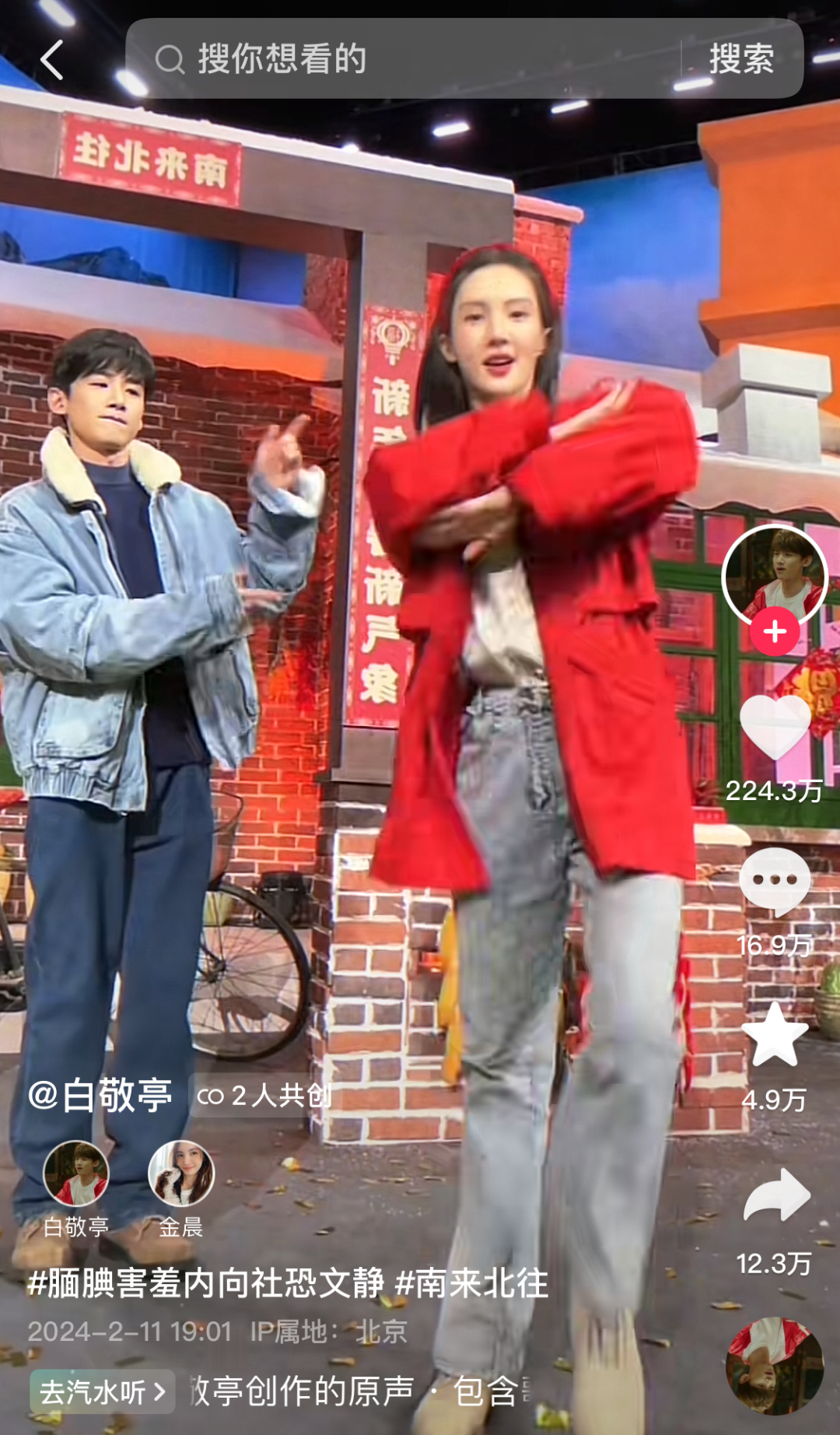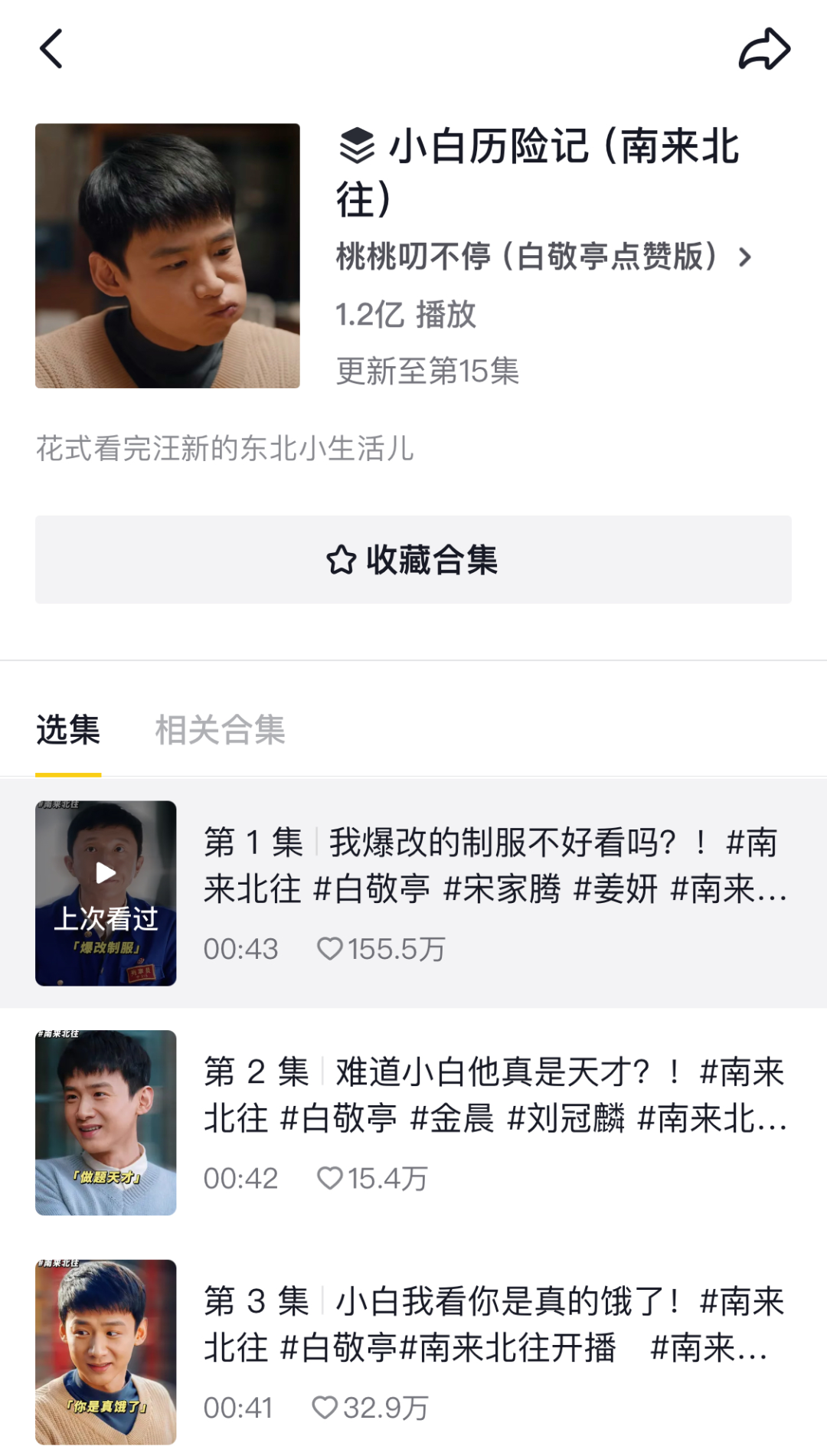 其中,账号@桃桃叨不停(白敬亭点赞版)为该剧单独设立合集“小白历险记(南来北往)”,充分发挥白敬亭的明星效应为剧集引流。截至2月23日,该合集累计播放量达1.2亿,单条视频最高点赞量达155万+。