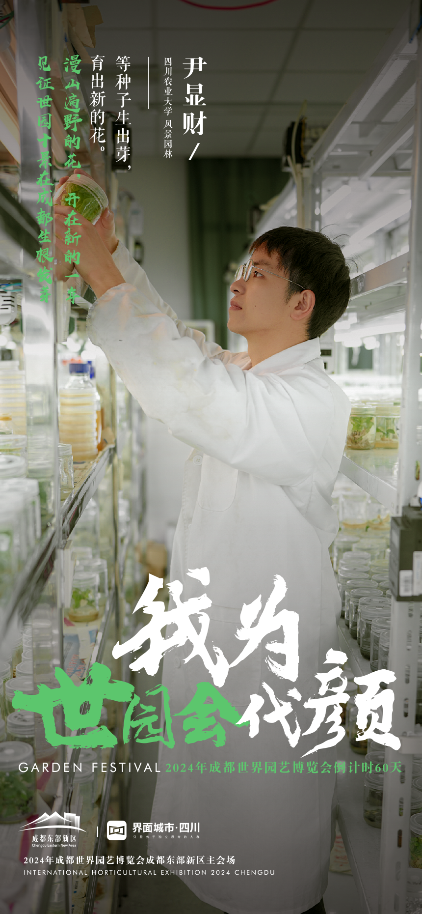在结束本科的学习后,尹同学确定了自己的方向,来到四川农业大学,进行对小报春的专项研究,诚然学术研究有时是枯燥的,但望着棚里一盆盆茁壮成长的小报春,成为了坚持的理由。而这样的坚持也收获了满意的结果,其参与的团队所培育出的花卉,在2021年于天府广场投入了20万株作为试点,并陆续投用于二环高架、天府绿道等地,也参与了大运会的氛围营造工作。在实验室里,身穿实验服的他来回穿梭,向我们展示了一瓶瓶小报春花的实验株。