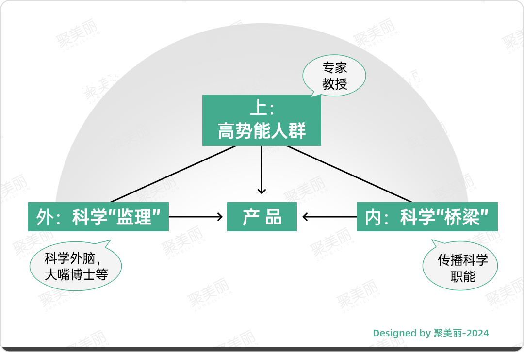 (1)它涵盖了传播影响力顶层的教授&皮科主任等专家型高势能人群、资深配方师&工程师出身的专业科普型KOL以及品牌内部的科学传播模块人员,共同组成的科学传播共同体,共创产品与内容;