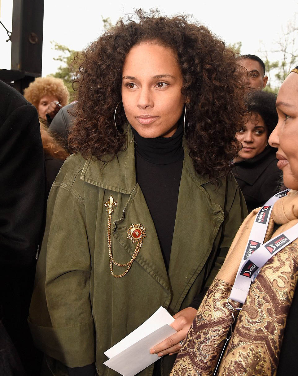 同样身为希拉里支持者的歌手艾丽西亚·凯斯也出现在了华盛顿特区的游行现场,她是“拒绝化妆、素颜出镜”行动的呼吁者。
