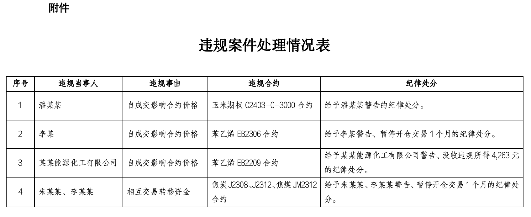 2月26日,大商所公告,近期调查审理了4起违规案件,决定对5名违规客户实施纪律处分。