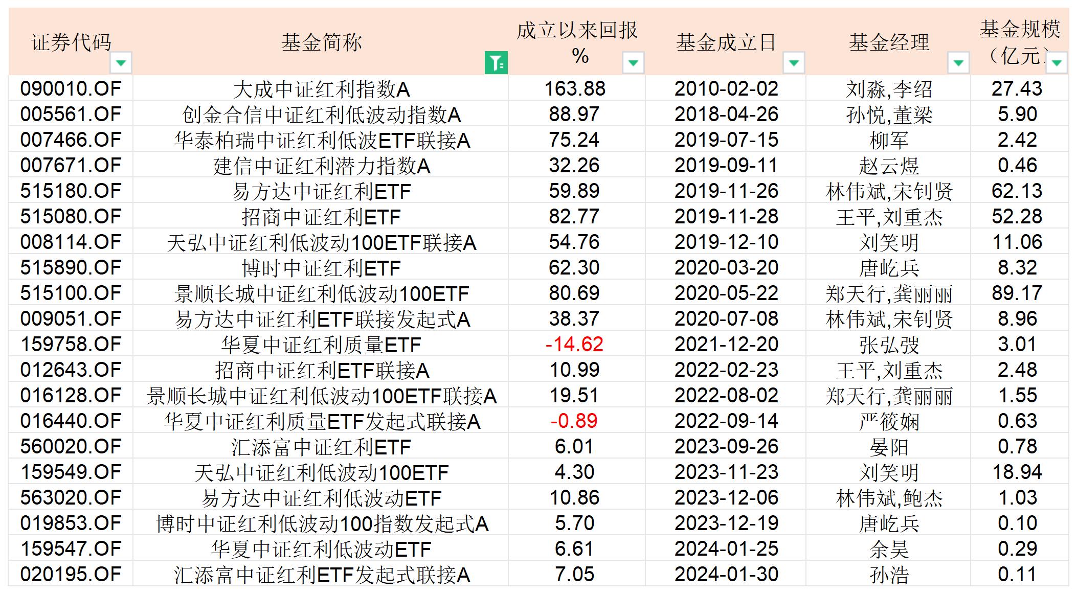 其中,自去年四季度以来,就先后有天弘、易方达、博时、华夏、汇添富等多家头部公募成立了跟踪中证红利低波动指数的相关产品。虽然成立时间较短,但上述基金的至今回报率均为正。截至2月25日,易方达中证红利低波动ETF成立至今的回报率为10.86%。
